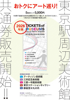 東京駅を中心に位置する、アーティゾン美術館、三井記念美術館、三菱一号館美術館、東京ステーションギャラリーと静嘉堂@丸の内の5館で利用できるお得な共通券を、2026年1月から販売します。1年間で各館のお好きな展覧会を一つ選んでご入館いただけるチケットです。
